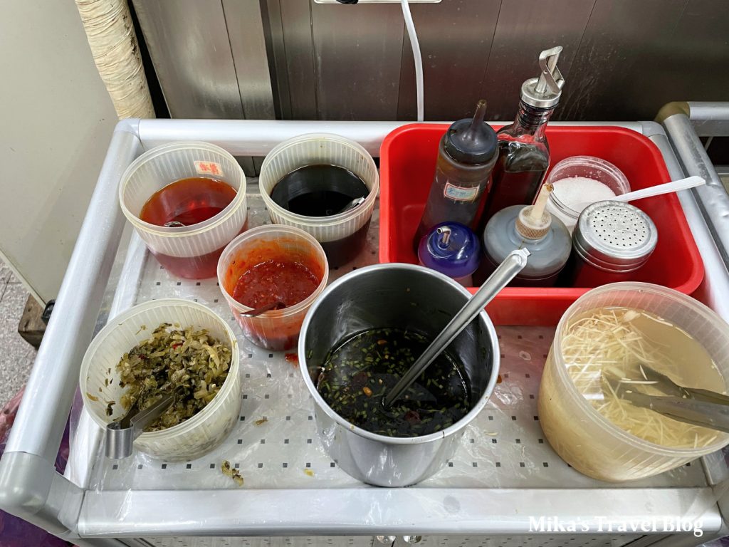 餐具、醬料都是自取,推薦大家一定要來點酸菜,是乾麵不可少的靈魂!